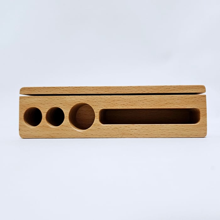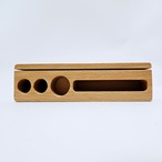 ・スマホの溝 約幅80×奥行12mm、ハンコ立て 直径21mm、ペン立て 直径15mm×2ヶ所