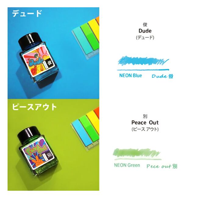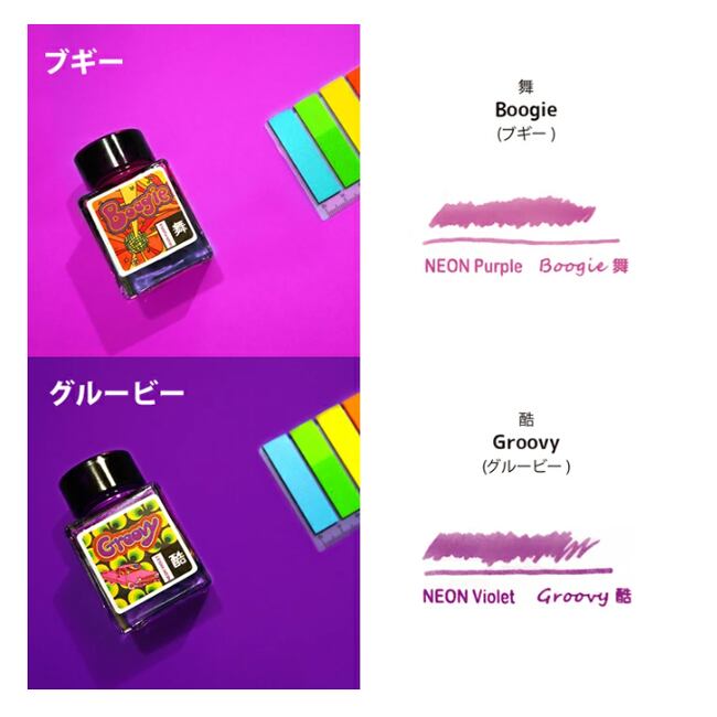 トリビュート トゥ ネオンシリーズは、60年代~70年代をイメージさせるデザインラベルで、発色のきれいなインクです。