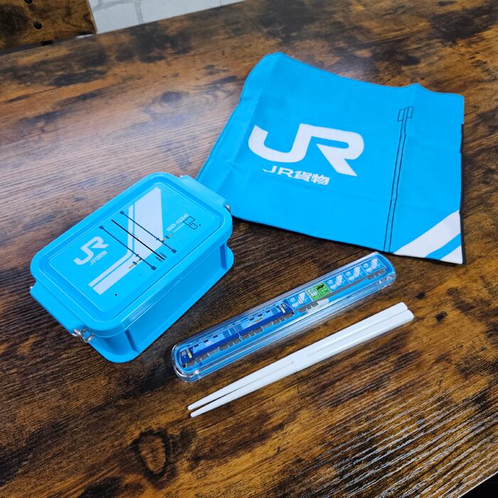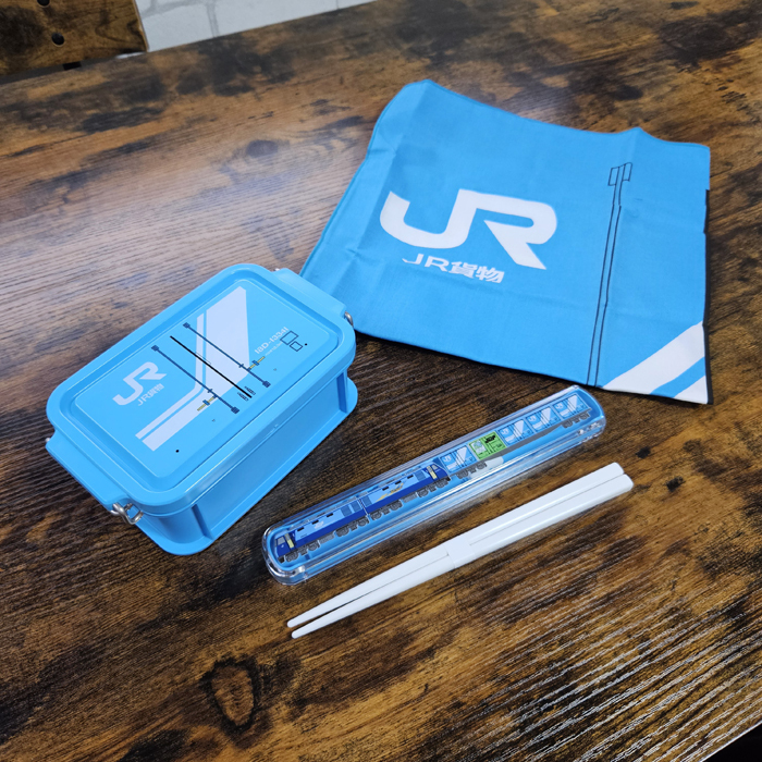 JR貨物のランチボックス、お箸、ナフキンの3点セットです。