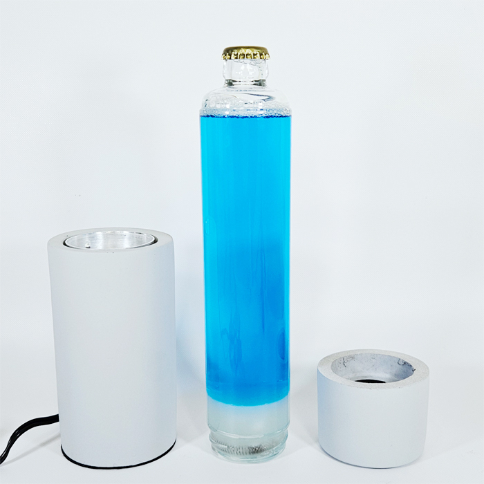 例えば、代表作であるDripping Lamp(ドリッピングランプ)は、コンクリートベースとガラスボトルを組み合わせ、光と液体のゆらぎで独特のリズムを演出します。素材の質感やフォルムの組み合わせにこだわりながら、どこかオブジェのような存在感を放つHUNT9のアイテム。