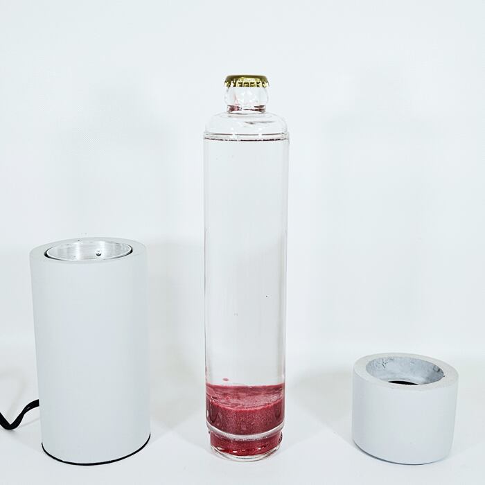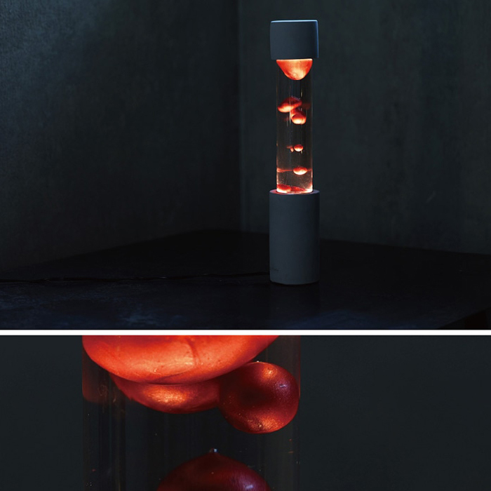 例えば、代表作であるDripping Lamp(ドリッピングランプ)は、コンクリートベースとガラスボトルを組み合わせ、光と液体のゆらぎで独特のリズムを演出します。素材の質感やフォルムの組み合わせにこだわりながら、どこかオブジェのような存在感を放つHUNT9のアイテム。