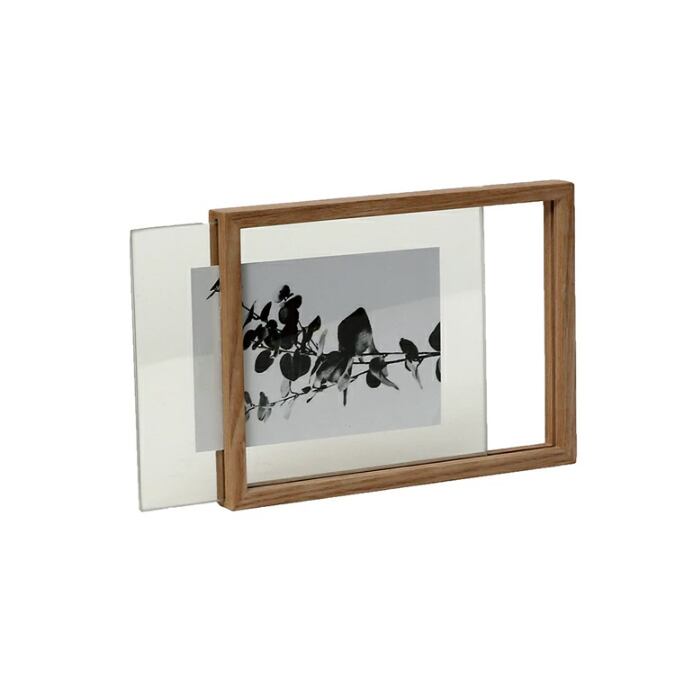 2枚のガラスで写真を挟む仕組みなので、写真だけではなくお気に入りのポストカードや押し花をコラージュしても。