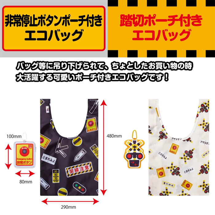 ポポンデッタ 鉄道グッズ ポーチ付きエコバッグ 非常停止ボタン 踏切 PDG-ECO