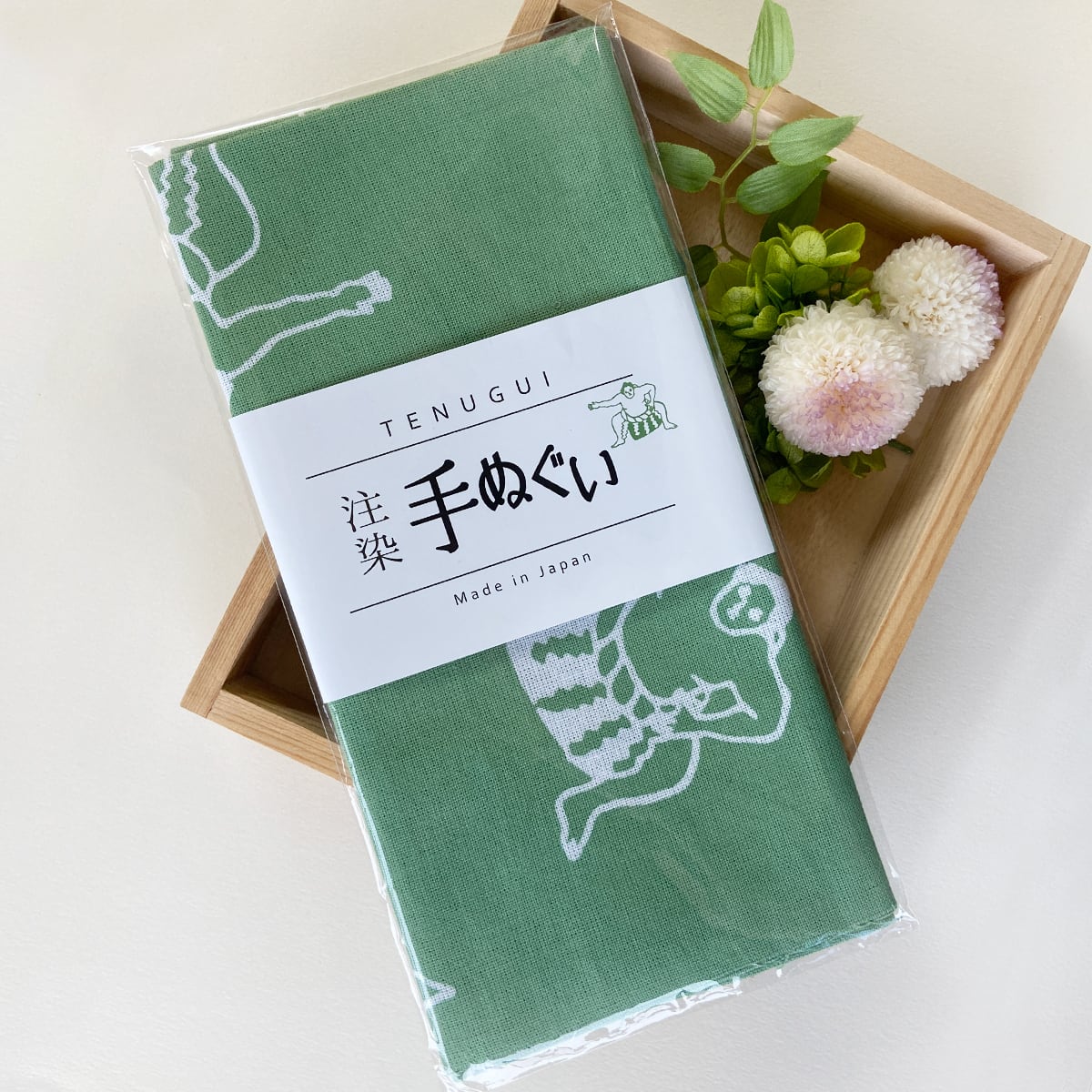 面白可愛い雑貨のお店「花籠や」のイラストを使用した手ぬぐいです!