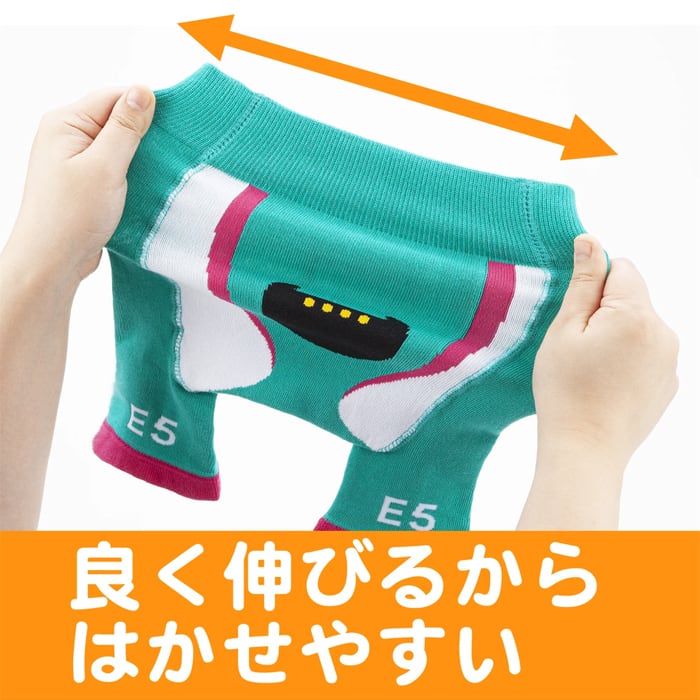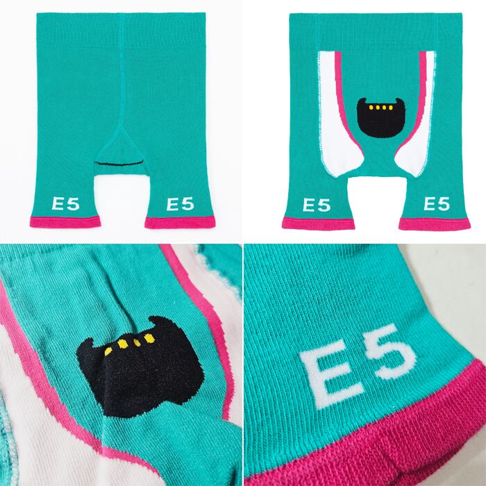 おしりに新幹線の顔の部分、裾にはそれぞれの新幹線の名前が書いてあるかわいいデザイン。