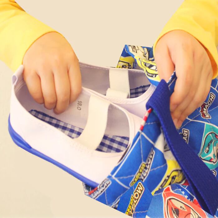いろいろな新幹線がイラストされたかわいいキルトシューズバッグです。