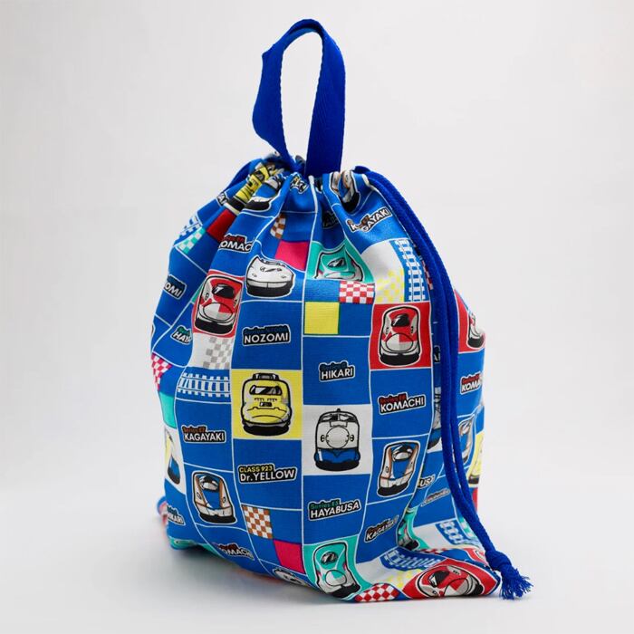 いろいろな新幹線がイラストされたかわいい体操着入れです。