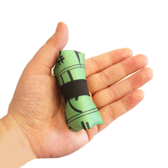 お仕事帰りの食料品の買出しやレジャーにも中にあるゴムでまとめて持ち運びしやすい一枚あると便利なエコバッグです。
