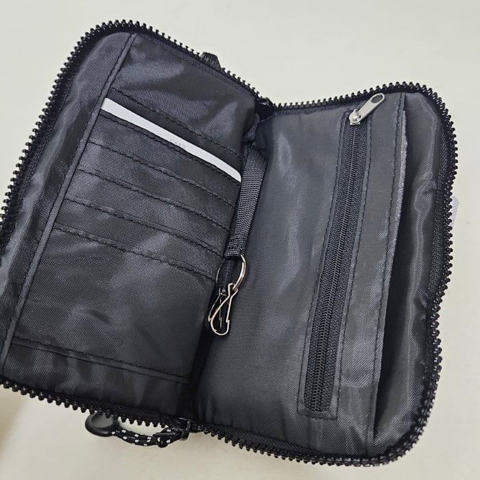 ラウンドジップタイプでスマホもすっぽり入るサイズで、このままおでかけもできます。