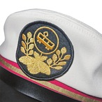 クラウン部分に付いている電車ワッペンは刺繍でかわいくて本格的!