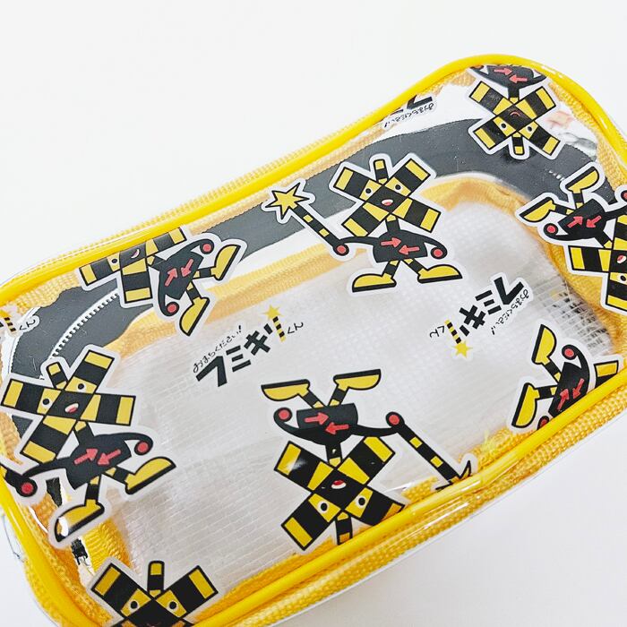 フミキリくんがたくさんプリントされた可愛らしいポーチ。