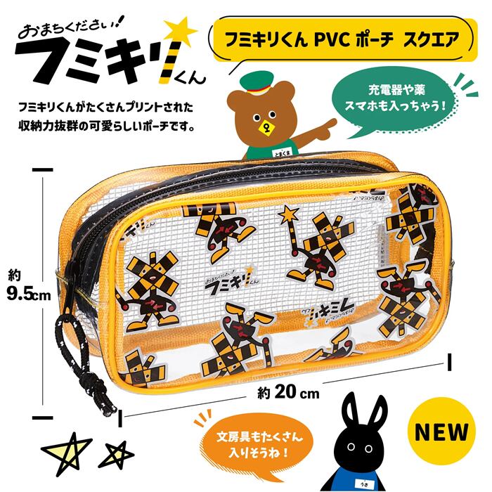 ポポンデッタ フミキリくん PVC ポーチ スクエア 収納 小物入れ 雑貨 総柄 電車 グッズ 踏切