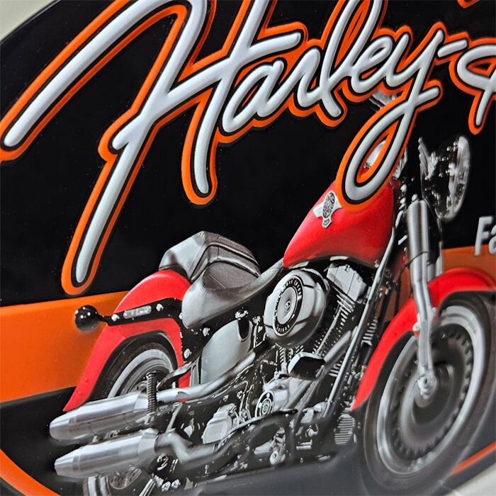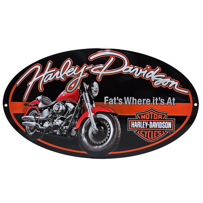 HARLEY DAVIDSON ハーレーダビッドソン エンボスメタルサイン H-D Fat Boy Oval 看板 Ande Rooney