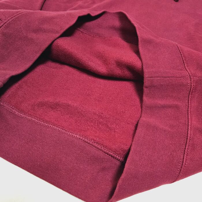 素材:綿 70%、ポリエステル30%、10オンス(330gm)、裏起毛、二重フード